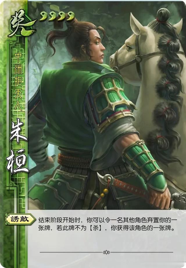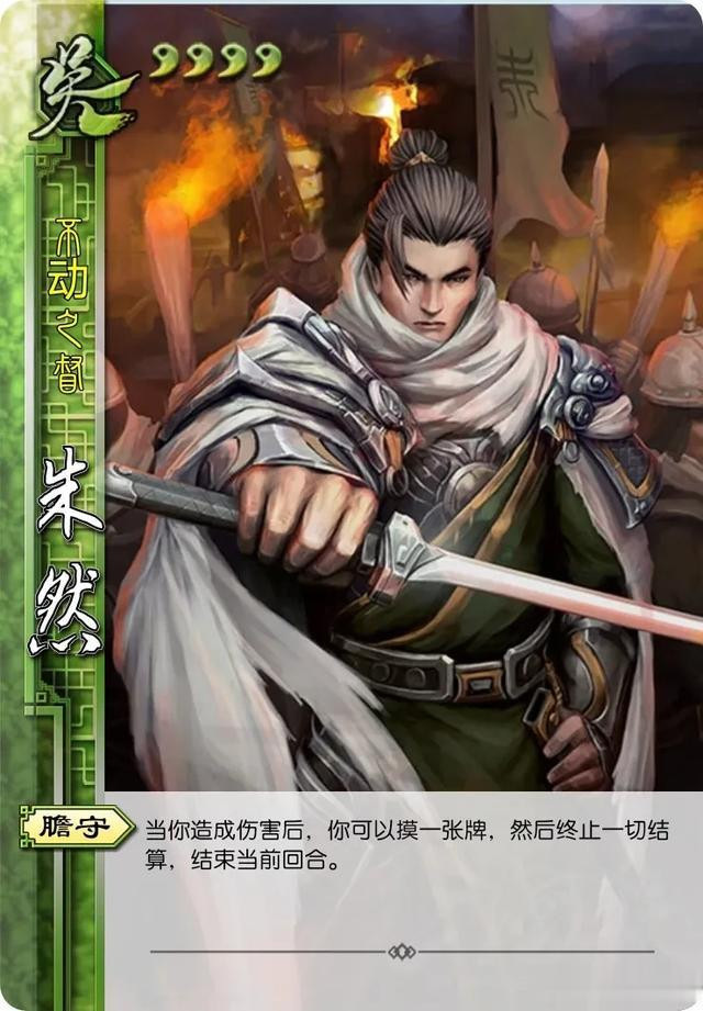 朱家三费第一个,是朱然。最老版本的朱然,【胆守】技能是造成伤害后可以摸1张牌,终止一切结算,然后结束回合。这技能很明显是不如【闭月】,造成伤害才能摸1张牌,那没有造成伤害,不就白板一个吗?